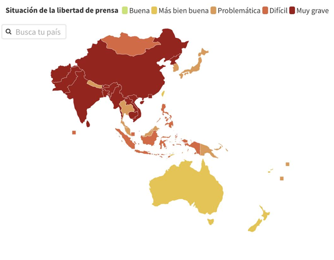 La República Popular China representa un modelo autoritario que ejerce un dominio absoluto sobre los medios digitales y restringe la independencia periodística, lo que la posiciona como un país no libre. La falta de transparencia y de contrapesos dificulta el ejercicio de un periodismo independiente, ya que desde la política hasta la seguridad, todo se encuentra sometido al control del régimen. El Partido Comunista absorbe la profesión periodística influyendo en la información y utilizando medios legales para evitar la propagación de contenidos sensibles. Revertir esta tendencia requeriría el desmantelamiento del monopolio informativo y la creación de un cuerpo legal menos restrictivo.