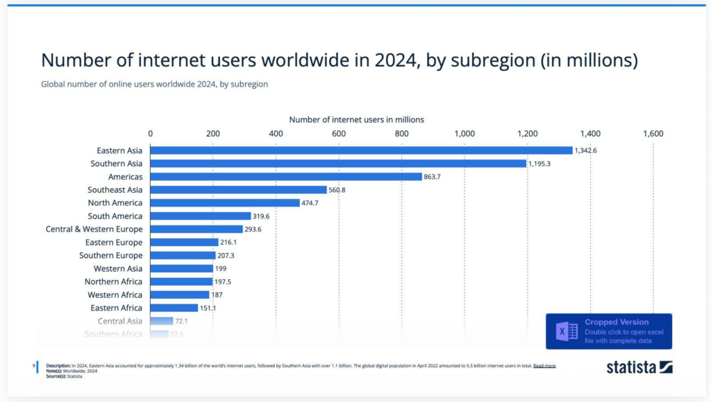 Gráfico IX. Número de usuarios de internet por regiones. Statista.