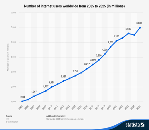 Según datos recogidos en 2025, el número de usuarios de internet en el mundo ya supera los 6.000 millones, lo cual representa un 74% de la población mundial, sin embargo, siguen existiendo diferencias entre países. Hay regiones en las que su población está conectada casi en su totalidad, mientras que en otras aún muestra una penetración más reducida.